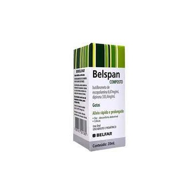 Contraindicação: Você não deve usar Belspan se tiver alergia a analgésicos semelhantes à dipirona (como isopropilaminofenazona, propifenazona, fenazona, fenilbutazona), ao butilbrometo de escopolamina ou a algum outro componente do produto. Isto inclui, por exemplo, o desenvolvimento de agranulocitose (febre, dor de garganta ou alteração da boca e garganta, associados a ausência ou diminuição de células brancas no sangue) após o uso destas substâncias. BELSPAN É UM MEDICAMENTO. SEU USO PODE TRAZER RISCOS. SE PERSISTIREM OS SINTOMAS, PROCURE O MÉDICO E O FARMACÊUTICO. LEIA A BULA. Princípio Ativo: Butilbrometo De Escopolamina + Dipirona EAN: 7897917001380